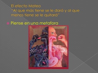Este documento presenta diferentes herramientas mentales y creativas como mapas mentales, metáforas y los seis sombreros para pensar. Explica qué son los mapas mentales, cómo funcionan y sus ventajas. También define las metáforas y proporciona ejemplos. El objetivo es proporcionar estas herramientas para organizar y expresar ideas de manera lógica y creativa.