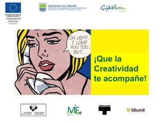 El documento presenta la 'ikaskidetza sarea', un proyecto que fomenta la creatividad y el aprendizaje informal a lo largo de la vida. Describe la creatividad como una habilidad para generar soluciones innovadoras y expone técnicas y obstáculos al pensamiento creativo. Además, se mencionan metodologías como el 'design thinking' para el desarrollo de ideas y prototipos.