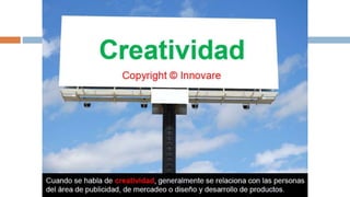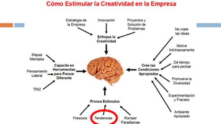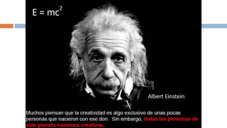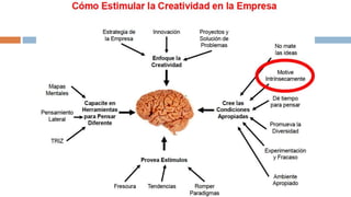 La creatividad es la capacidad de generar ideas o conceptos nuevos. Es una habilidad que puede desarrollarse con práctica a través de técnicas como pensamiento divergente, asociación de ideas y desafiar las suposiciones habituales. Fomentar un ambiente que valore nuevas ideas y permita tomar riesgos también puede estimular la creatividad de una persona.
