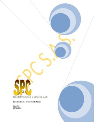 Sociedad Productora y Comercial S.A.S. es una empresa colombiana fundada por Sabrina Aydee Posada Robles dedicada a la importación, exportación, comercialización y producción de mercancías legales. La misión de la empresa es ofrecer la mejor calidad y variedad de productos nacionales e importados para obtener la confianza y lealtad de los clientes. Su visión para el 2020 es convertirse en la principal cadena de tiendas por departamentos en Centroamérica que brinde calidad y variedad a sus clientes.