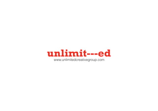 El documento habla sobre la creatividad y cómo pensar de manera diferente para ser más creativo. Explica que la creatividad implica generar ideas originales y valiosas a través de la imaginación. También describe brevemente el proceso creativo de la agencia Unlimited y presenta algunos casos reales como ejemplos. El objetivo general es enseñar a desarrollar una actitud creativa pensando de forma no convencional.