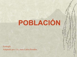 Este documento describe conceptos clave relacionados con las poblaciones biológicas. Define una población como todos los miembros de una especie dentro de un área determinada, y describe sus características principales como el tamaño, densidad, estructura de edades y distribución. Explica cómo medir el tamaño y densidad de una población, y los patrones comunes de distribución. También cubre conceptos como crecimiento poblacional exponencial y logístico, y cómo factores como nacimientos, muertes, inm