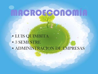 El documento habla sobre el tema de macroeconomía y crecimiento económico. Explica conceptos como crecimiento económico, desarrollo económico, y desarrollo sostenible. También discute factores que impulsan el crecimiento como la inversión, y factores que lo frenan como la desigualdad. Finalmente, resume diferentes teorías sobre el crecimiento y modelos de desarrollo como la sustitución de importaciones e industrialización orientada a la exportación.