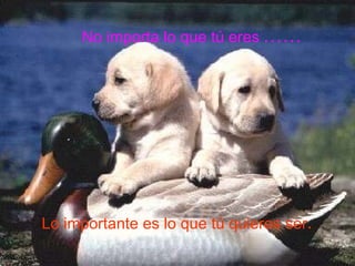 El documento enfatiza que lo más importante son los sueños y metas de una persona, no las circunstancias actuales. Aconseja enfocarse en lo que uno quiere ser y lograr, no juzgar a otros, y luchar para alcanzar los sueños propios sin limitarse a ser un simple reflejo del mundo.