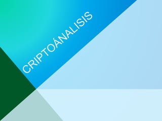 El documento trata sobre criptoanálisis, que es el estudio y análisis de sistemas de información cifrados con el fin de descubrir sus debilidades y vulnerabilidades. Explica que a lo largo de la historia, el criptoanálisis ha sido clave en conflictos bélicos al permitir descifrar los códigos enemigos. También describe diferentes tipos de ataques criptoanalíticos y cómo los avances tecnológicos como la computación cuántica podrían afectar a la seguridad de los