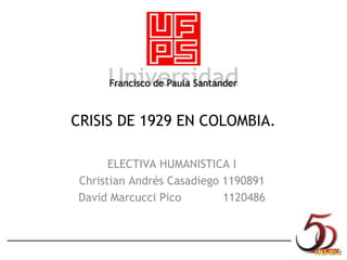 La crisis de 1929 tuvo un gran impacto en Colombia. Cuando comenzó la crisis, la economía colombiana tenía altos ingresos y divisas externas debido a las exportaciones de café y petróleo. Sin embargo, el corte al crédito externo y la caída de los precios del café a fines de 1928 produjeron una depresión económica en Colombia. Para 1929, los indicadores económicos se habían deteriorado significativamente, con una caída en los precios del café y los bonos colombianos. La crisis llevó a una interrupción de los flu