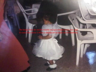 El documento presenta una serie de fotos de Crystal Altagracia Peralta Cordero a lo largo de su vida, desde cuando tenía 2 años hasta la actualidad, mostrando momentos importantes como bodas de familiares, con amigos y su padre, a quien quiere mucho. También incluye metas futuras como convertirse en una profesional realizada, estar casada con una hermosa familia y viajar por el mundo.