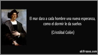 Cristóbal Colón fue un navegante genovés que descubrió América en 1492 cuando zarpó de España con tres barcos, la Niña, la Pinta y la Santa María, en busca de una nueva ruta a la India. Al llegar a una isla de las Bahamas que nombró San Salvador, Colón creyó haber llegado a Asia, aunque en realidad había encontrado un nuevo continente. Este descubrimiento tuvo grandes consecuencias, como la mezcla de culturas europeas e indígenas y el inicio de la conquista y coloniz
