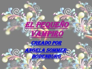 El documento describe a Angela Sommer-Bodenburg, creadora de la serie de libros para niños "El pequeño vampiro". Relata que nació en 1948 en Alemania y ha escrito más de 40 libros. La serie narra la amistad entre un niño humano y un niño vampiro y sus aventuras juntos, siendo adaptada también al cine y la televisión.