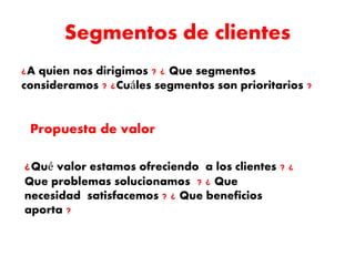 El documento habla sobre el modelo de negocios CANVAS, una herramienta que permite crear y diseñar modelos de negocio de manera simple y organizada. Consiste en una plantilla con nueve bloques que se completan con post-its para visualizar la propuesta general del negocio de forma dinámica e innovadora. Esto ayuda a emprendedores a empezar un nuevo negocio o mejorar uno existente al definir aspectos como los segmentos de clientes, la propuesta de valor y otros componentes clave del modelo de negocio.