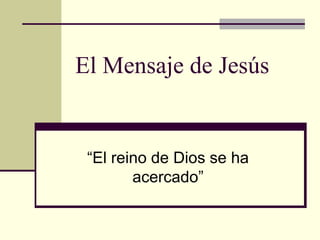 El documento describe a Jesús como maestro excepcional, cuyas enseñanzas provenían de su comunión con Dios Padre y el Espíritu Santo, así como de las Escrituras. Explica que Jesús enseñaba sobre el Reino de Dios, el cual se había acercado con su ministerio y representaba la autoridad espiritual de Dios sobre las vidas de los creyentes y la creación, aunque también tenía una dimensión escatológica.