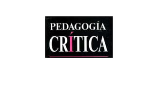 La crítica se distancia de la opinión o juicio de valor y se origina en el materialismo histórico, que implica que el hombre debe distanciarse de lo dado para establecer un juicio crítico libre. Aunque las pedagogías críticas no son homogéneas, comparten el objetivo de habilitar a los desposeídos y oponerse al análisis positivista ahistórico de liberales y conservadores. Se desarrollaron teorías de reproducción en Europa, teorías de liberación en Latinoamérica, y teor
