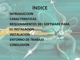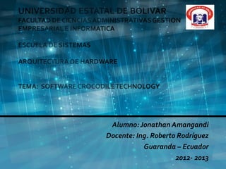 Este documento proporciona una introducción al software de diseño y simulación electrónica Crocodile Technology. Explica que el software permite diseñar y probar circuitos eléctricos, electrónicos y de control e incluye la visualización de componentes en 3D. Además, resume los requisitos técnicos para la instalación del software y describe los pasos para completar con éxito la instalación. Finalmente, concluye que Crocodile Technology es una herramienta extraordinaria para estudiantes que diseñan circuitos.