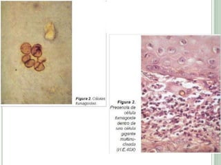 La cromomicosis es una micosis crónica de la piel y tejido subcutáneo causada por hongos negros como Fonsecaea pedrosoi. Se caracteriza por lesiones verrugosas que comienzan como nódulos pequeños y pueden extenderse formando placas. El diagnóstico requiere examen directo, cultivo e histopatología. No existe un tratamiento completamente eficaz, aunque la cirugía, radioterapia y antifúngicos sistémicos como itraconazol pueden usarse.