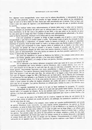 Este documento describe varias técnicas de caza tradicionales en Mallorca, incluyendo el adiestramiento de halcones, la caza de liebres y conejos con perros, y la caza de otros mamíferos como focas, zorros y gatos salvajes. Explica cómo se usan perros, trampas y armas como escopetas para capturar diferentes presas. También menciona que algunas especies como ratas y tejones se cazan para controlar su población.