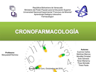 1) La cronoterapia estudia los efectos de la administración de medicamentos en función del ritmo biológico del individuo, buscando determinar el momento óptimo para su administración.