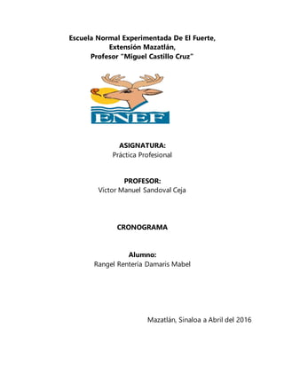Este documento presenta el cronograma y plan de acciones de una estudiante de práctica profesional para desarrollar su competencia en generar ambientes de aprendizaje. El plan incluye acciones como organizar el aula considerando el contexto de los estudiantes, establecer un clima de confianza a través del diálogo y respeto, y utilizar el tiempo escolar en actividades educativas, con el objetivo de lograr los propósitos educativos en todos los estudiantes. La estudiante evaluará su progreso usando cinco indicadores