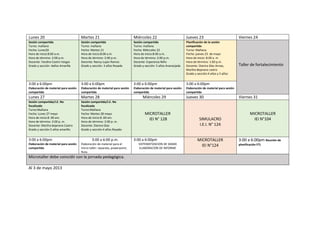 Este documento presenta el cronograma de visitas de mayo realizadas por la acompañante Doris Rubio Valdivia a tres Instituciones Educativas Iniciales. Incluye las fechas, horarios y docentes de las sesiones compartidas y otras actividades como reuniones de planificación, talleres de fortalecimiento, elaboración de materiales y asesorías a directores.