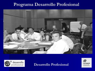 El documento presenta el programa de desarrollo profesional con diferentes áreas como contabilidad y auditoría, administración, economía y finanzas, impuestos, laboral-previsional y actuación en la justicia. Para cada área se detallan el profesor titular, el temario y los temas que se abordarán.