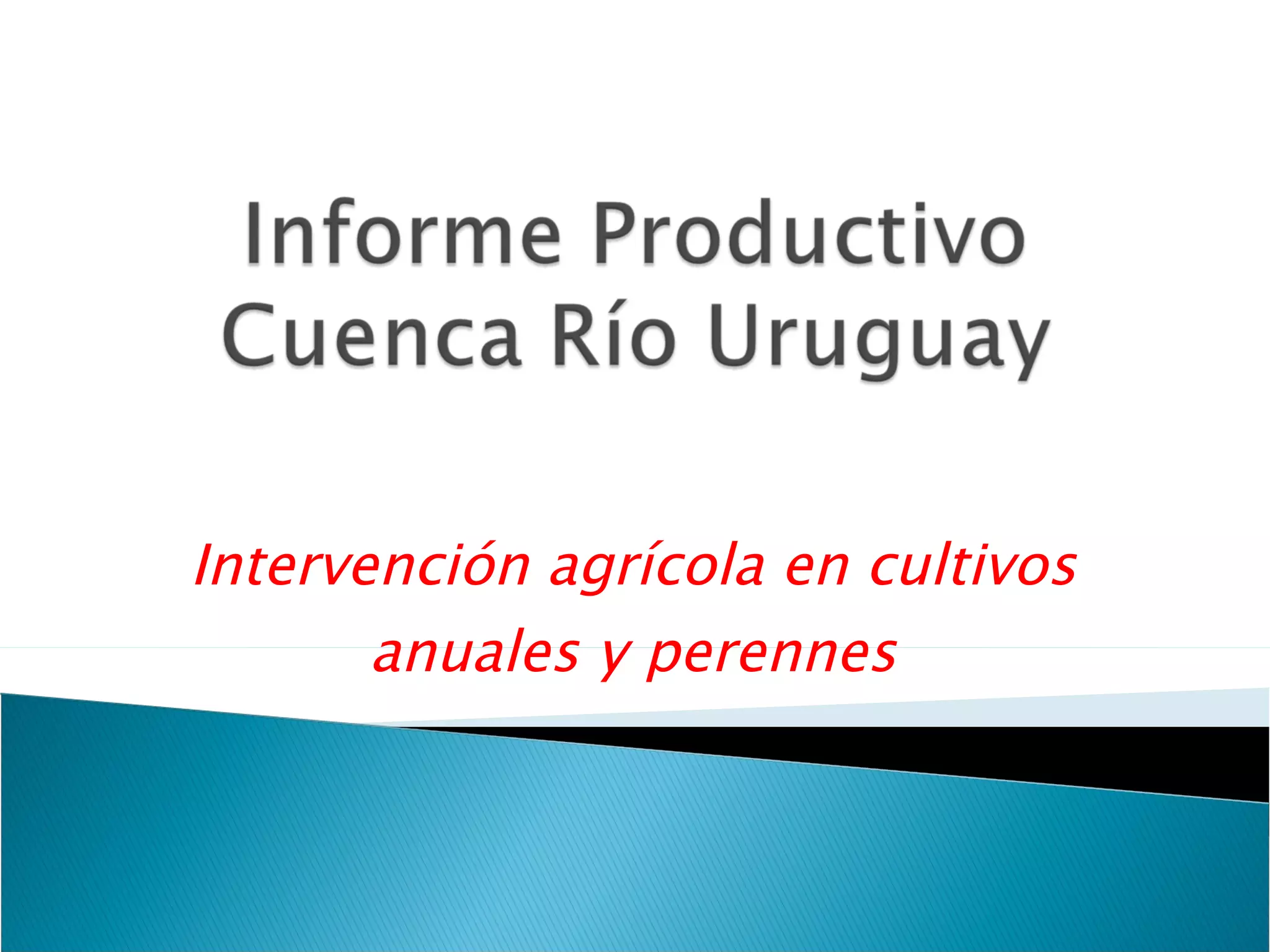 Este documento proporciona información sobre las áreas agrícolas anuales y perennes en la cuenca del Río Uruguay en Argentina, Brasil y Uruguay. Muestra que la participación de Corrientes en la superficie total cultivada en la cuenca es solo del 1.6%, mientras que Brasil representa el 58.4% y Uruguay el 19%. Aunque el proyecto Ayuí Grande agregaría 15,000 hectáreas adicionales para Corrientes, esto solo representaría el 0.33% de la superficie agrícola total en la cuenca.