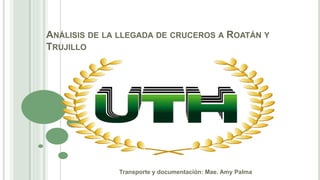 Este documento analiza la llegada de cruceros turísticos a las islas de Roatán y Trujillo en Honduras. Resume la historia de los cruceros en el país, define términos como crucero, crucerista y tripulante, e identifica los puertos y temporadas de mayor y menor llegada de cruceros. También describe las líneas de cruceros y nacionalidades que visitan las islas, y realiza un análisis FODA sobre el impacto de los cruceros. Finalmente, detalla las actividades que pueden realizar los turistas durante sus visitas.