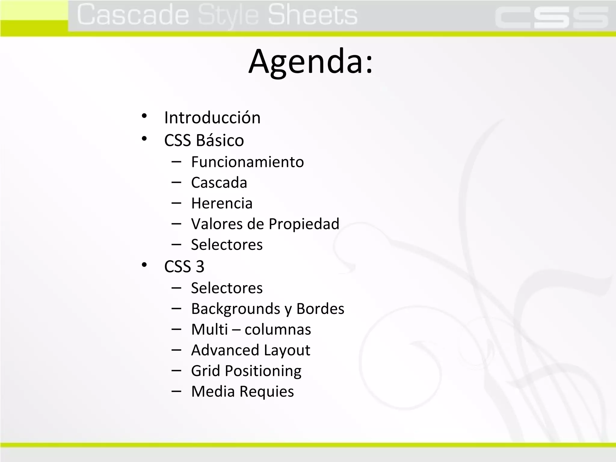 Este documento presenta una introducción a CSS (Cascading Style Sheets), incluyendo su historia, ventajas, formas básicas de aplicar estilos, propiedades como cascada, herencia, valores y selectores. También cubre temas avanzados como CSS 3, incluyendo nuevas características para backgrounds, bordes, fuentes, diseños de múltiples columnas y posicionamiento en cuadrícula.
