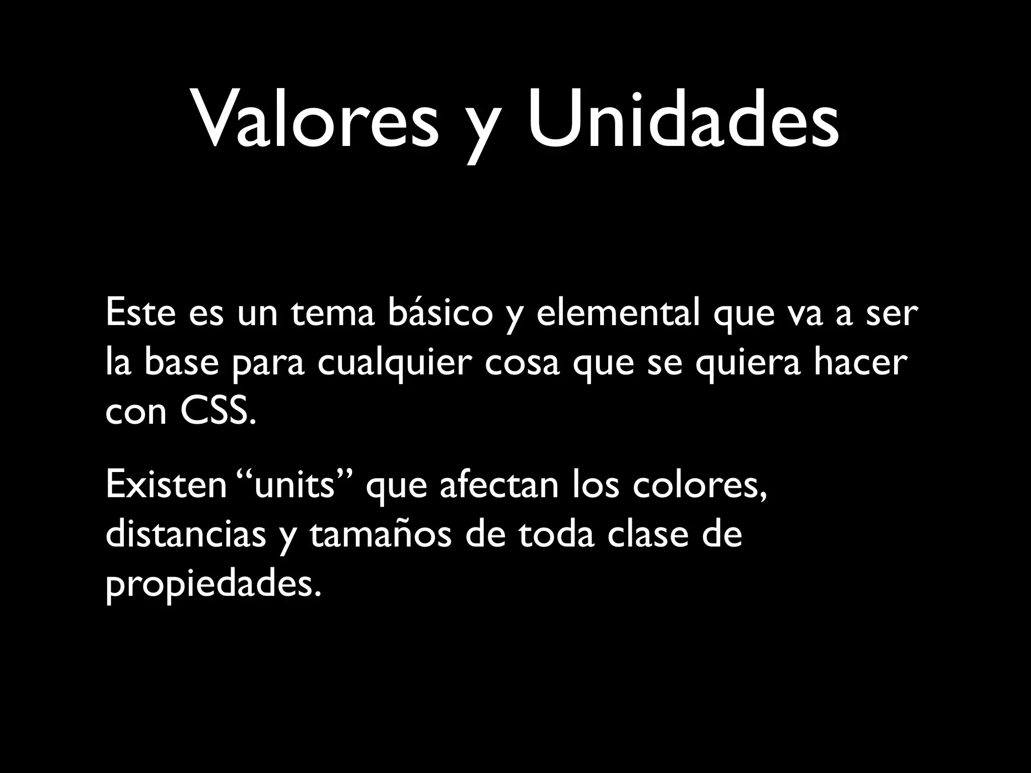 El documento describe las unidades y valores fundamentales para el uso de CSS, abarcando tipos de números, porcentajes, colores y longitudes, entre otros. Se explica cómo se especifican los colores mediante nombres, valores RGB y hexadecimales, así como las diferencias entre longitudes absolutas y relativas. También se mencionan URLs y palabras clave, destacando la herencia de propiedades en CSS.