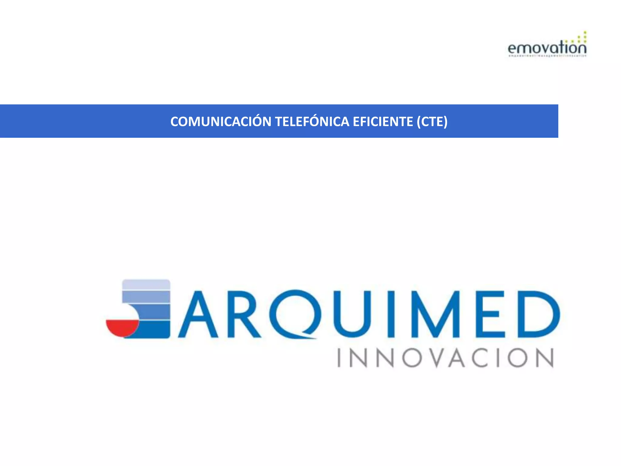 El documento describe un programa de capacitación sobre comunicación telefónica eficiente (CTE) para empleados de Arquimed. El objetivo es mejorar la atención al cliente mediante el uso de técnicas como saludos amables, respuestas rápidas y resolución efectiva de problemas. Un diagnóstico encontró que los tiempos de espera son altos, falta estandarización y elementos diferenciadores, lo que podría afectar negativamente la percepción de los clientes sobre la compañía. El programa incluye sesiones prácticas, evaluación y