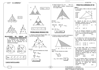 Este documento presenta fórmulas y conceptos relacionados con el cálculo de áreas de figuras planas, incluyendo triángulos, cuadriláteros, trapecios y figuras formadas por la unión de estas. Se explican expresiones para hallar el área de triángulos en función de sus lados, alturas, ángulos internos y radios asociados. También se detallan fórmulas para calcular el área de cuadriláteros como trapecios, paralelogramos, rectángulos, cuadrados y rombos.