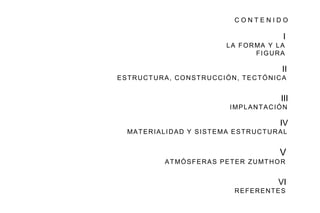 El documento presenta un resumen de un proyecto de diseño de una biblioteca. El proyecto propone un volumen horizontal flotante al cual se accede por medio de una escalera que conduce a diferentes espacios culminando en un espacio de lectura individual. El proyecto utiliza materiales como piedra y madera, y enfatiza la integración de la naturaleza a través de vegetación.