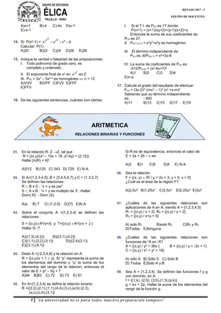 Este documento presenta información sobre grados de expresiones algebraicas y polinomios especiales. En la primera sección se definen conceptos como grado relativo y absoluto de un polinomio. La segunda sección describe diferentes tipos de polinomios especiales como polinomios monómicos, homogéneos y completos. La tercera sección contiene ejercicios de aplicación sobre estos temas. El documento concluye con una tarea domiciliaria de 15 preguntas relacionadas con álgebra y geometría.