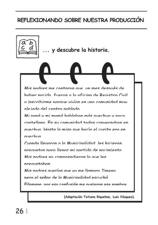 Este documento es un cuaderno de trabajo sobre relaciones familiares y convivencia destinado al Ciclo Inicial de Educación Básica Alternativa en Perú. Incluye actividades para que los estudiantes reflexionen sobre temas como sus nombres, datos de familiares, y las comidas en familia. El cuaderno fue publicado por el Ministerio de Educación de Perú y reimpreso varias veces entre 2004 y 2008.