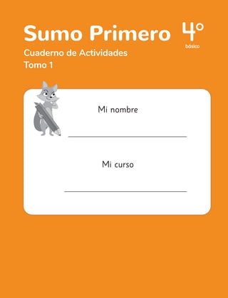 El documento presenta información sobre un cuaderno de actividades para 4° básico. Incluye 10 capítulos sobre temas matemáticos como números, sumas, áreas, entre otros. Cada capítulo contiene actividades y resúmenes. El cuaderno fue traducido y adaptado por el Ministerio de Educación de Chile para ser más inclusivo.