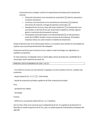 1. La industria chilena se desarrolló en las décadas de 1940-1960 con empresas líderes en alimentos, electrodomésticos, vestuario y calzado.