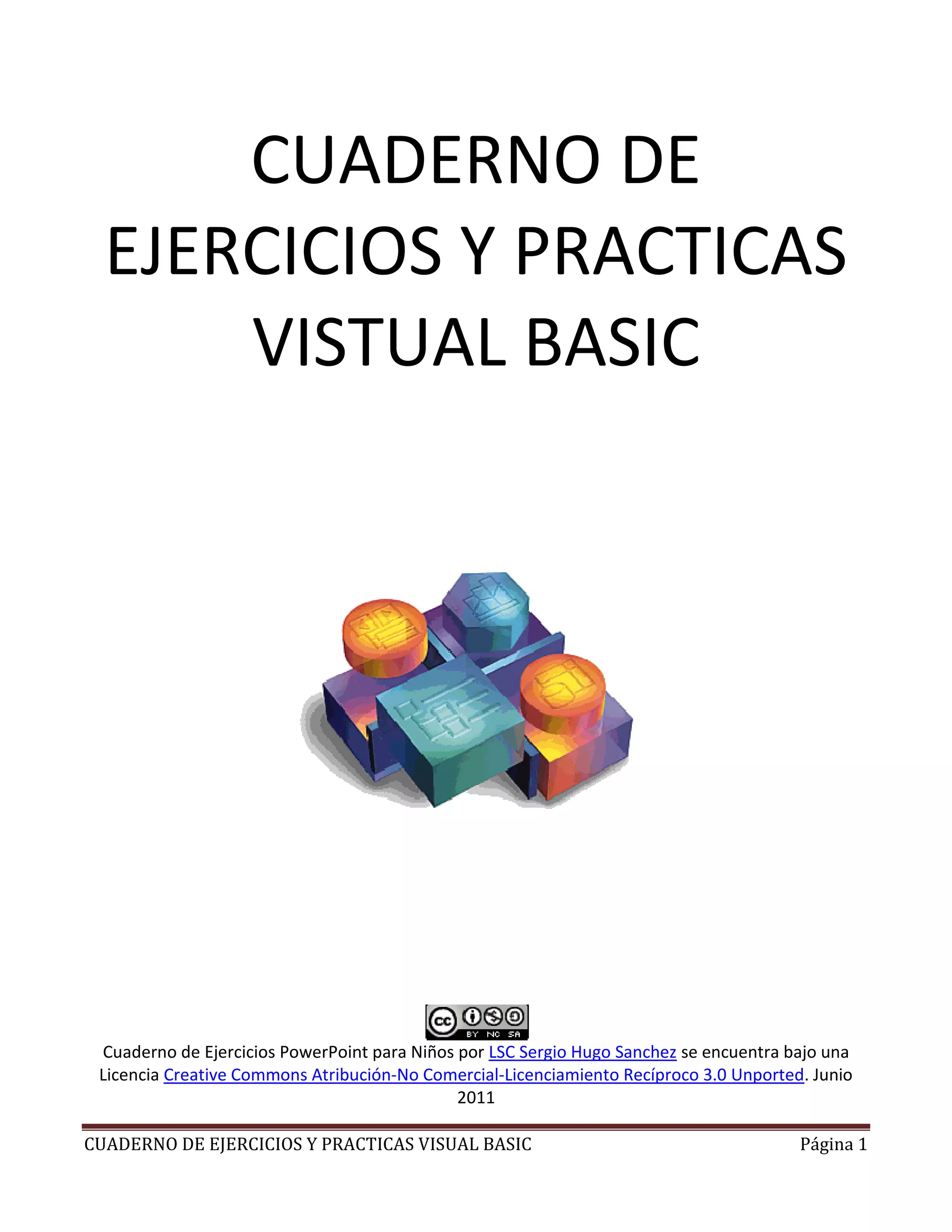 Este documento presenta un cuaderno de ejercicios y prácticas para Visual Basic. Incluye 14 ejercicios y 2 prácticas sobre temas como declaración de variables, controles, operadores lógicos y más. El objetivo es que los estudiantes realicen los ejercicios para reforzar los conceptos teóricos aprendidos.