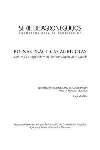 Este documento presenta una guía sobre buenas prácticas agrícolas dirigida a pequeños y medianos agroempresarios. La guía explica los conceptos y principales iniciativas relacionadas con las buenas prácticas agrícolas y ofrece orientaciones generales sobre diversos temas como rastreabilidad, manejo del suelo, fertilización, protección de cultivos, cosecha y transporte. El objetivo es facilitar la implementación de normas de inocuidad alimentaria de forma que los pequeños productores puedan asegurar la calidad e inocuidad