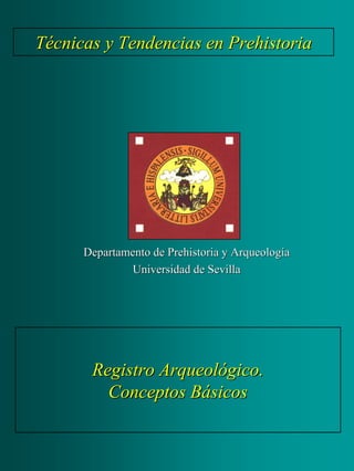 El documento describe conceptos básicos sobre el registro arqueológico. Explica que un yacimiento arqueológico es una agrupación espacialmente definida de vestigios materiales que reflejan una actividad humana pasada. Los elementos de un yacimiento incluyen contextos estratigráficos, artefactos y ecofactos. Los artefactos pueden clasificarse funcionalmente como tecnológicos, sociotécnicos o ideotécnicos. Los yacimientos también varían funcionalmente y pueden ser lugares de habitación, producción