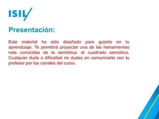 Este documento explica cómo proyectar un cuadrado semiótico, una herramienta analítica clave en semiótica. Primero, se debe seleccionar un corpus o tema de análisis, como la carrera de boxeo de Muhammad Ali. Luego, se proyectan las relaciones fundamentales del cuadrado: la contrariedad entre términos opuestos como aficionado vs. profesional; la contradicción entre un término y su negación; y la complementariedad entre términos y sus negaciones contrarias. Finalmente, se