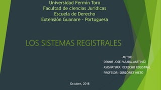Este documento resume las diferencias y semejanzas entre los sistemas registrales de Australia, España, Francia, Venezuela y Alemania. Explica que el sistema australiano se basa en el método de inscripción y registro de propiedad relacionado con títulos, nacimientos, defunciones y matrimonios. El sistema español impone principios como la rogación y la fe pública. El francés es facultativo y los registradores pasan documentos en doble ejemplar. El venezolano sigue el criterio de oponibilidad a ter