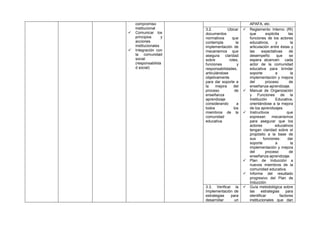 Este documento compara los factores de calidad de gestión educativa del IPEBA y la dirección institucional en una escuela. Presenta indicadores en tres dimensiones: gestión de gobierno, planeamiento y organización, e implementación de procesos. Describe los estándares IPEBA y los indicadores seleccionados para cada componente, así como los resultados esperados de la escuela como el formato de asistencia a reuniones y documentos sobre la misión, visión y objetivos estratégicos participativos.