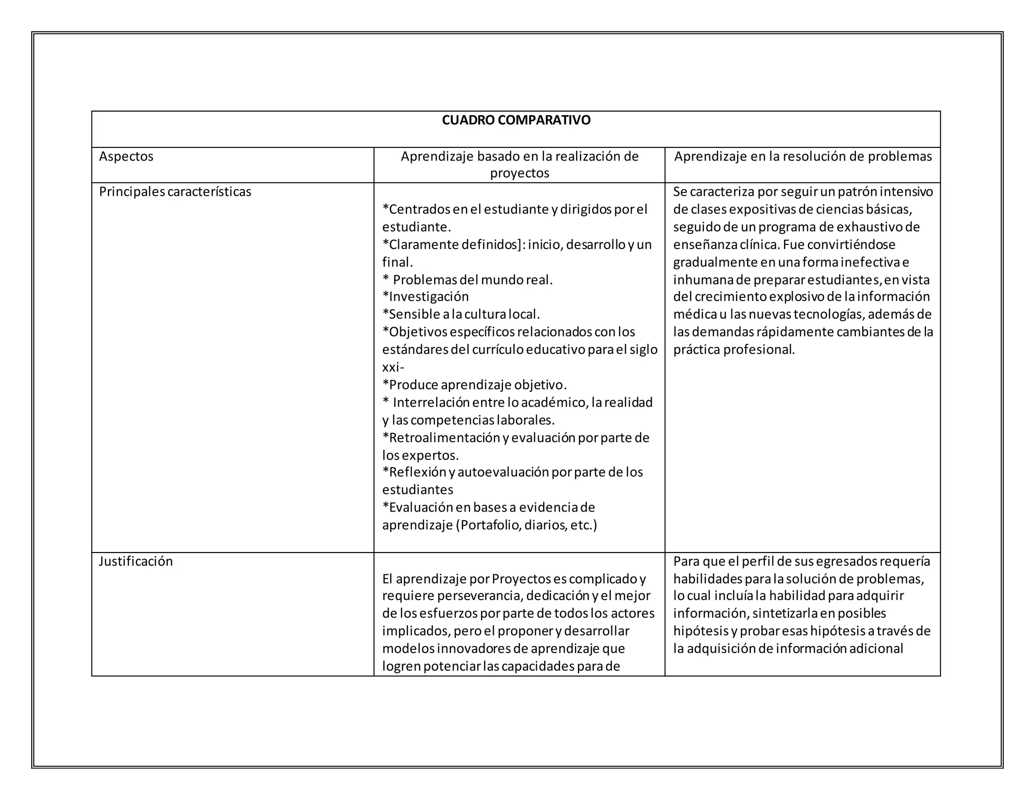 El documento compara el aprendizaje basado en proyectos y la resolución de problemas. Ambos enfatizan el aprendizaje centrado en el estudiante y la investigación de problemas reales. Sin embargo, el aprendizaje basado en proyectos requiere que los estudiantes planifiquen y desarrollen proyectos con objetivos específicos, mientras que la resolución de problemas involucra analizar escenarios de problemas para identificar necesidades de aprendizaje. Tanto los métodos promueven el desarrollo de habilidades a través de