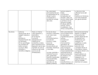 El cuadro comparativo resume las características principales del arte medieval en sus distintas etapas: Paleocristiano, Prerrománico, Bizantino, Gótico y Románico. La pintura paleocristiana se desarrolló en catacumbas e iglesias y se enfocó en ilustrar manuscritos. La escultura bizantina era frontal y hierática, mientras que la gótica priorizó la espiritualidad sobre la anatomía. La arquitectura románica combinó elementos latinos, orientales y septentrionales como