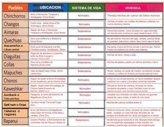 Este documento describe las diferentes viviendas y estilos de vida de los pueblos originarios de Chile. Detalla que los pueblos del sur tenían viviendas móviles hechas de cuero, mientras que los del centro y norte vivían en chozas, rucas y casas de piedra o adobe. Algunos grupos eran nómadas y otros sedentarios, dependiendo de los recursos disponibles en su territorio.