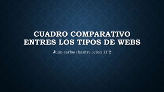 El documento compara tres tipos de sitios web (Web 1.0, Web 2.0 y Web 3.0) describiendo sus características, desventajas y ventajas. La Web 1.0 se centra en la información unidireccional sin retroalimentación de los usuarios, mientras que la Web 2.0 facilita la usabilidad y la interacción entre usuarios. La Web 3.0 se caracteriza por mayores anchos de banda, búsquedas inteligentes y una web semántica.
