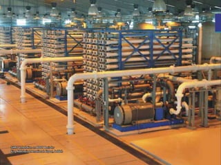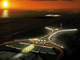 Este documento describe el proceso de licitación internacional para construir una nueva planta desalinizadora en el Aeropuerto Internacional Rey Abdulaziz en Arabia Saudita. La planta existente era obsoleta y tenía problemas de mantenimiento, restringiendo el suministro de agua al aeropuerto. El proceso incluyó una ronda preliminar de negociación, presentación de ofertas técnicas y económicas, y selección de un consorcio griego-saudí-estadounidense-italiano. La nueva planta entró en operación en