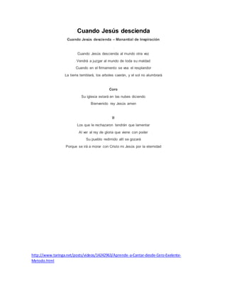 La canción habla sobre el regreso de Jesús al mundo para juzgar a la humanidad por sus maldades. Describe que cuando Jesús vuelva, el cielo se iluminará, la tierra temblará y los árboles caerán. Su iglesia estará en las nubes dándole la bienvenida. Aquellos que rechazaron a Jesús se lamentarán al verlo regresar con poder, mientras que su pueblo redimido se alegrará de ir a vivir con él por la eternidad.