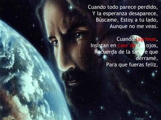 Este documento ofrece palabras de consuelo y esperanza para aquellos que se sienten perdidos o desamparados. Afirma que Dios nunca abandona a sus hijos y que, aunque a veces permite pruebas en la vida, es para fortalecer el espíritu. Insta al lector a confiar en Dios, levantar la cabeza y seguir adelante, prometiendo que todo se resolverá a su debido tiempo. Termina declarando el amor de Jesucristo por el lector.