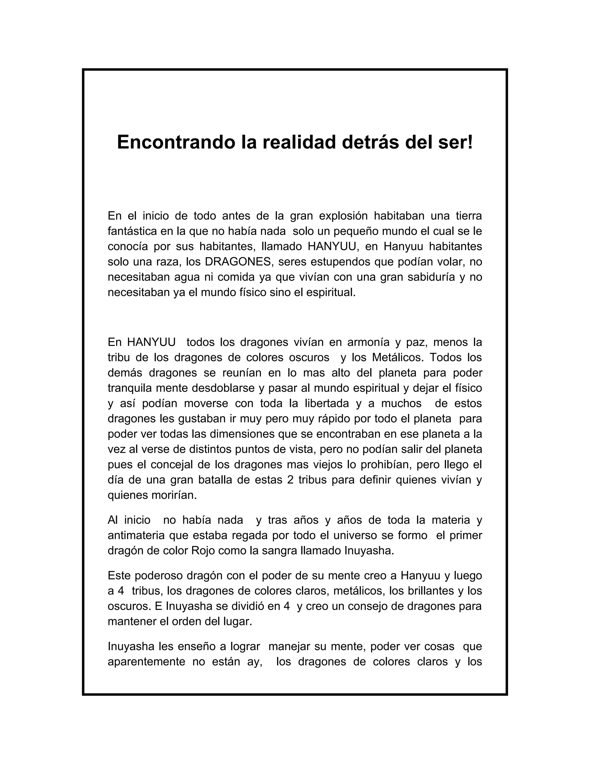1) En el planeta Hanyuu habitaban dragones que vivían en armonía, excepto las tribus oscuras y metálicas que siempre peleaban por el poder.