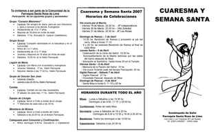 La Cuaresma es un tiempo de conversión espiritual de 40 días que comienza el Miércoles de Ceniza y termina el Domingo de Ramos, antes de la Semana Santa. Es un periodo para reflexionar, hacer penitencia, escuchar la Palabra de Dios y prepararse para celebrar la Pascua de la resurrección de Jesús.