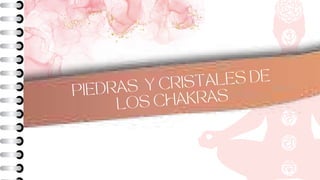 Este documento describe los siete chakras principales del cuerpo humano, las piedras asociadas a cada chakra y sus propiedades curativas. Explica cómo las piedras contienen energía vibratoria que puede transferirse a los chakras correspondientes para restaurar el equilibrio energético y proporcionar beneficios para la salud mental, espiritual y física. Además, proporciona instrucciones sobre cómo utilizar las piedras de los chakras a través de la meditación, la decoración del hogar y la joyería